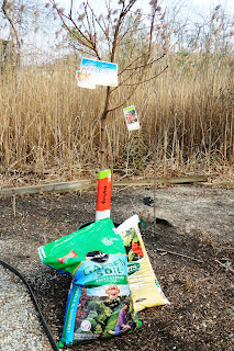 We were determined to figure out a plan for my 30th birthday that day, especially because we need to send out invitations soon. We had been trying to decide between an activity or a night out at a bar but neither option was really sitting right. All of a sudden it hit us, brunch! We love brunch! We could have my party at a country club with a champagne brunch then invite everyone back to the house for cake, etc. Joe is going to check with a few of our favorite places for pricing so that we can get the invitations out by next weekend. I'm so excited, everyone can dress up, it'll be so adult! Now that we had our biggest hurdle crossed we moved on to the yard. Joe wants to make sure it looks nice if people are going to being hanging out back there in just over a month, we went to Home Depot to pick up a few things. We got a peach tree and lots of soil. Anyone know how long it takes a tree like this to actually product fruit?